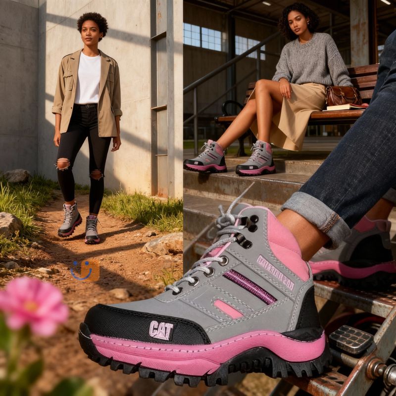 Estos botines de mujer reinventan el clásico. Mantienen toda la durabilidad y el agarre excepcional de la suela tractor CAT, pero con un diseño pensado para ti. La combinación de colores Gris con detalles en Pink aporta un toque de delicadeza y personalidad, ideal para quien quiere destacar con sofisticación.
